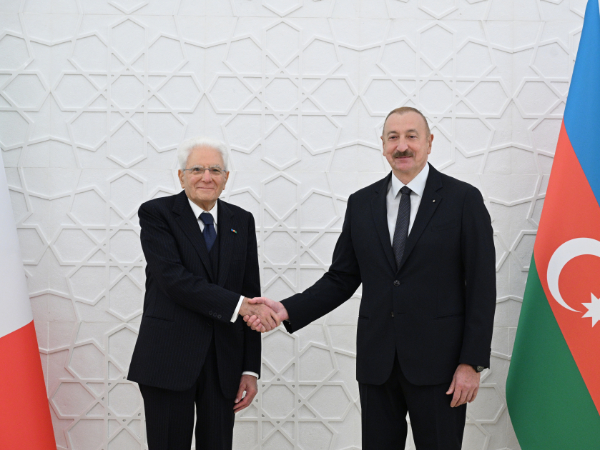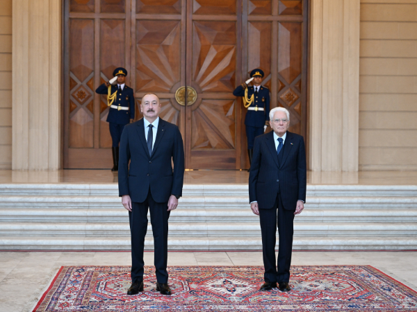 Azərbaycan Prezidenti İlham Əliyev İtaliya Prezidenti Sercio Mattarellanı qarşıladı.