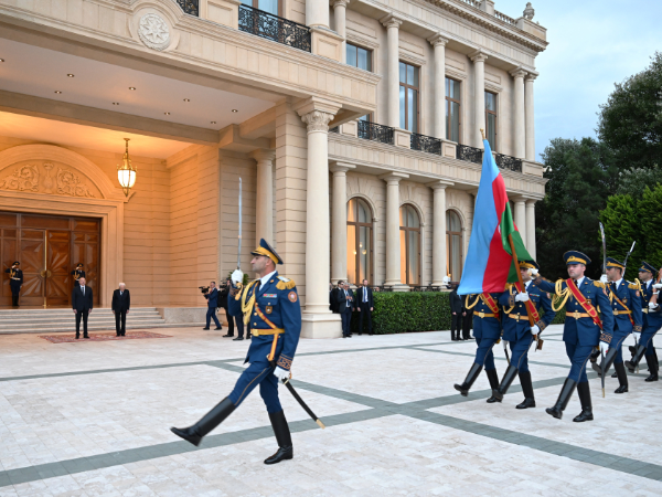 Fəxri qarovul dəstəsi hərbi marşın sədaları altında Azərbaycan Prezidenti İlham Əliyevin və İtaliya Prezidenti Sercio Mattarellanın qarşısından keçdi.