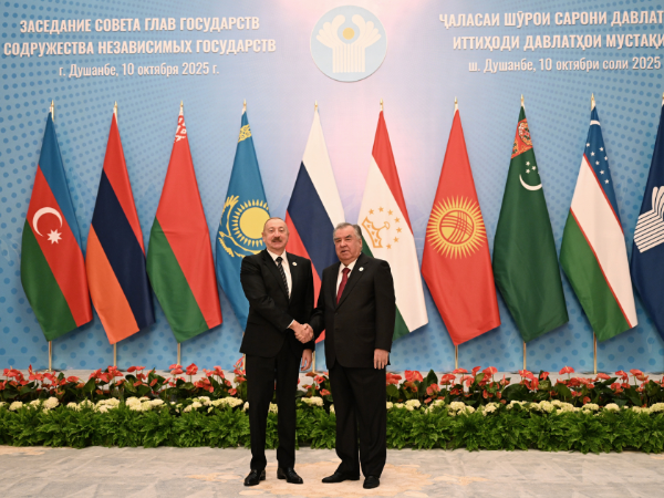 Azərbaycan Respublikasının Prezidenti İlham Əliyev MDB Dövlət Başçıları Şurasının iclasında iştirak etmək üçün Düşənbədəki "Millət" sarayına gəlib.