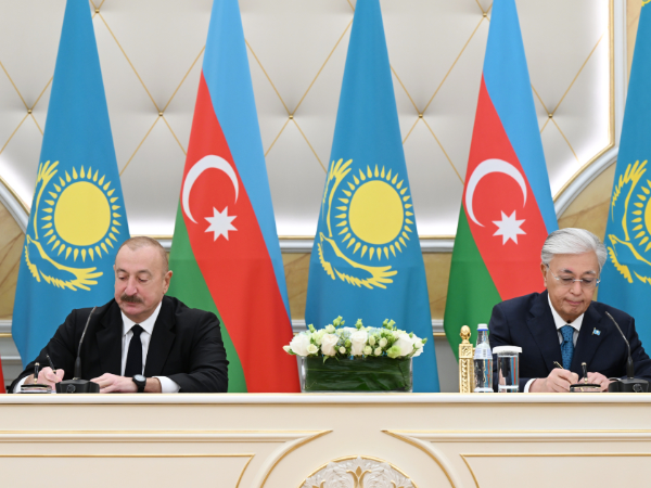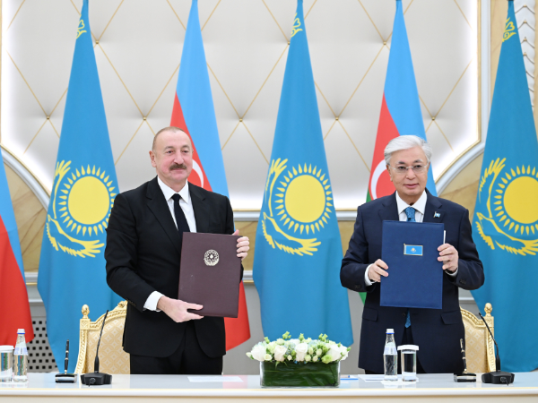 Sonra Azərbaycan-Qazaxıstan sənədləri mübadilə olundu.