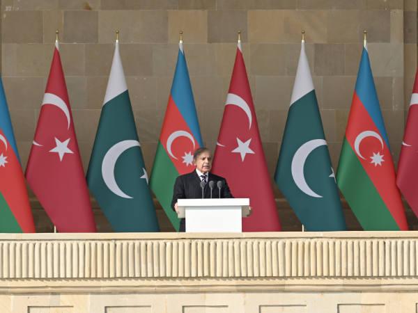 Daha sonra Pakistan İslam Respublikasının Baş naziri Məhəmməd Şahbaz Şərif çıxış etdi.