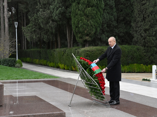 Prezident İlham Əliyev Ulu Öndərin məzarı önünə əklil qoydu.