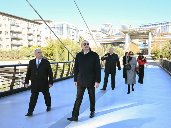 Dövlətimizin başçısı, birinci xanım və qızları “Bakı Ağ Şəhər”də Zaman meydanı və buradakı piyada körpüsünün açılışında da iştirak etdilər.