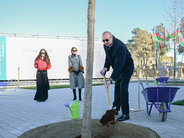 Prezident İlham Əliyev, birinci xanım Mehriban Əliyeva və qızları Palıd meydanı parkında ilk palıd ağaclarını əkdilər.