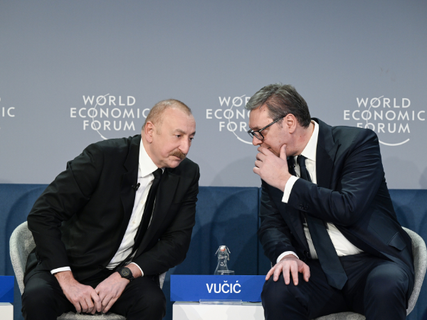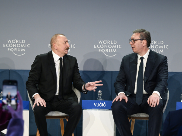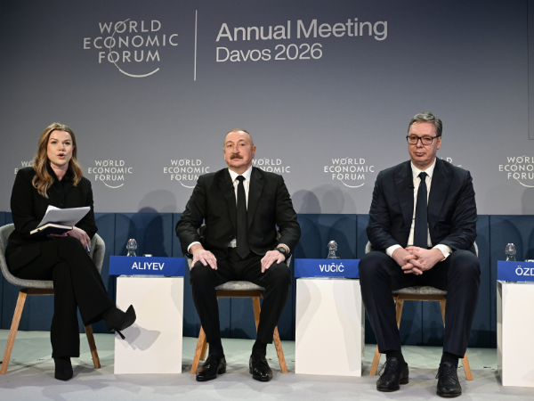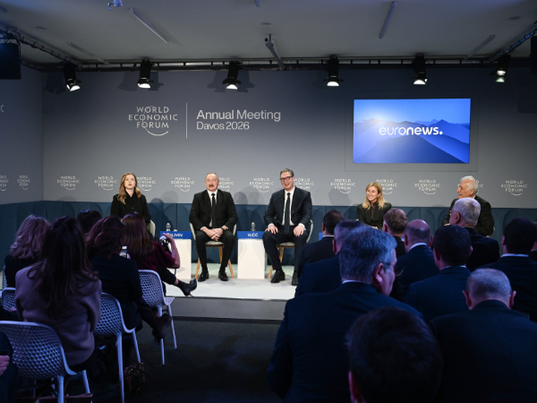 Moderator: 2026-cı ilin Dünya İqtisadi Forumuna və “Avrasiyanın iqtisadi özünəməxsusluğunun müəyyənləşdirilməsi” adlanan sessiyaya xoş gəlmisiniz. Burada müzakirə apardığımız zaman Qərbdən Şərqə doğru rəqabət aparan maraqlar və Qafqaz ilə Mərkəzi Asiyada təsir və gücün tarazlığı ilə səciyyələnən vəziyyət müşahidə edilir. Artan rəqabət fonunda geniş infrastruktur planları və formalaşan ticarət dəhlizləri göz qarşısındadır. Region genişlənən həmin marşrutların əksər hissəsindən necə yararlana bilər və onlar üçün öz rolunu necə gücləndirə bilər? Bu gün sessiyada biz həmin mövzuları müzakirə edəcəyik və mən çıxış edəcək şəxsləri böyük şərəf hissi ilə təqdim edirəm. Azərbaycan Respublikasının Prezidenti İlham Əliyev, Serbiyanın Prezidenti Aleksandar Vuçiç, Türkiyədən “Limak Holdinq”in İdarə Heyətinin sədri Ebru Özdəmir və Ermənistan Respublikasının Prezidenti Vaaqn Xaçaturyan. Mənim adım Saşa Vakulinadır. Mən “Euronews” televiziya kanalının Avropa üzrə müxbiriyəm.