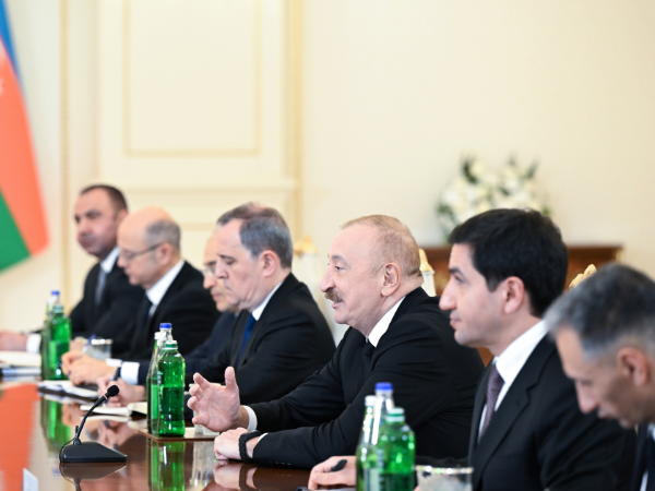 AZƏRTAC xəbər verir ki, qonaqları salamlayan Prezident İlham Əliyev dedi: Hörmətli qonaqlar, bir daha Azərbaycana xoş gəlmisiniz. Sizi görməyə çox şadam. Amerika Birləşmiş Ştatlarının Vitse-prezidentinin rəhbərlik etdiyi nümayəndə heyətini qəbul etmək bizim üçün böyük şərəfdir. Biz elə indicə ikitərəfli gündəliyimizin müxtəlif aspektlərini, həmçinin regional inkişafı müzakirə etdik. İndi biz daha geniş kontekstdə dialoqumuzu davam etdirəcəyik.