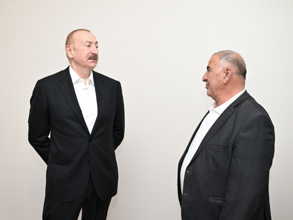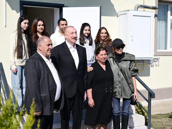 Görülmüş işlərlə tanışlıqdan sonra Prezident İlham Əliyev, birinci xanım Mehriban Əliyeva və qızları Arzu Əliyeva kəndə köçmüş sakin Rizvan İbrahimovun evində oldular və söhbət etdilər.