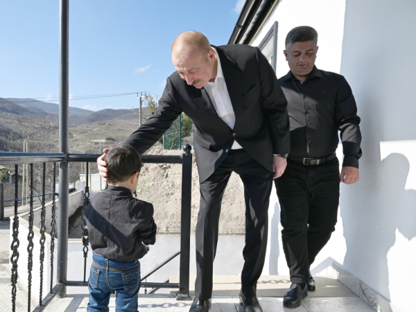 Sonra Prezident İlham Əliyev, birinci xanım Mehriban Əliyeva və qızları Arzu Əliyeva kəndə köçmüş Əmrah Sahiblinin evində oldular.