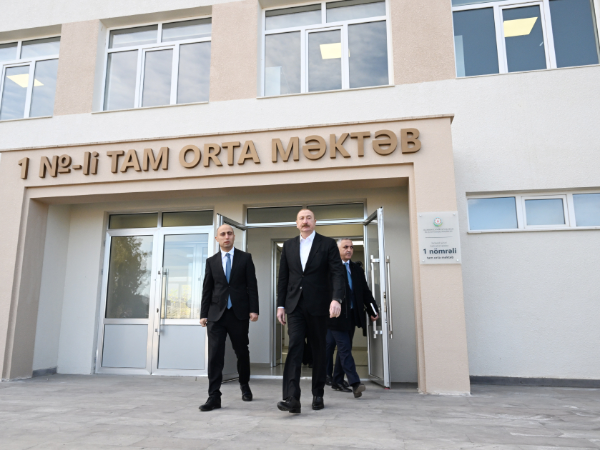 Prezident İlham Əliyev və birinci xanım Mehriban Əliyeva Neftçala rayonunda yeni inşa olunan məktəbin açılışında iştirak ediblər