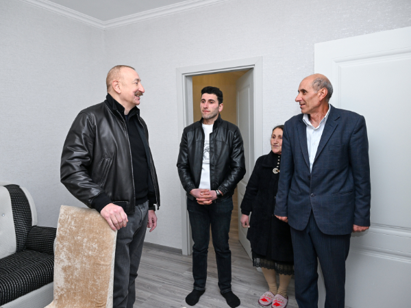 Sonra Prezident İlham Əliyev kəndə köçmüş Verdi Abdullayevin ailəsinə baş çəkdi.