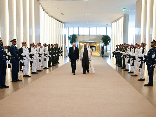 AZƏRTAC xəbər verir ki, Əbu-Dabinin Zayed Beynəlxalq Aeroportunda dövlətimizin başçısının şərəfinə fəxri qarovul dəstəsi düzülmüşdü.