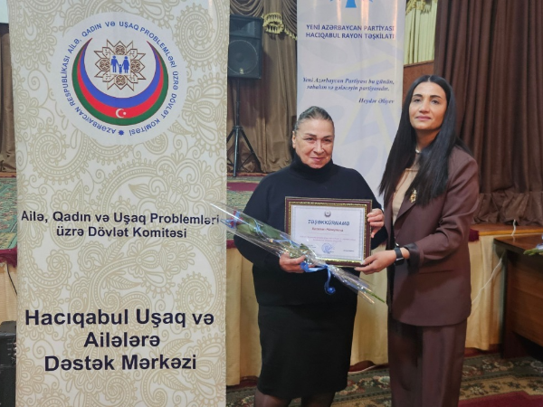 fəallığı ilə seçilən qadınlara YAP Hacıqabul rayon təşkilatının Fəxri Fərmanları,